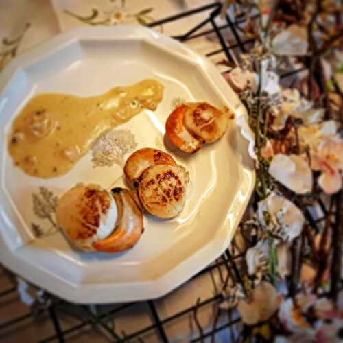 Saint-Jacques poêlées, sauce foie gras à la truffe noire, Un plat délicieux, avec peu de matières grasses, à déguster bien chaud, avec .
