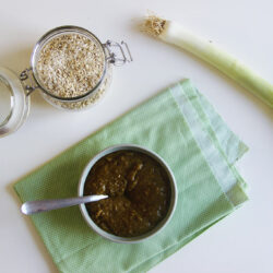 Une crème de poireaux délicieusement parsemée d'un crumble avoine/graines/jambon cru, à servir en verrines, cocottes, à l'apéro, en entrée ou pour accompagner un poisson.