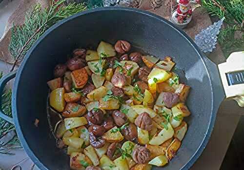 Ajoutez une touche festive et savoureuse à vos repas de réveillon avec cette poêlée de pommes de terre sautées et marrons.
