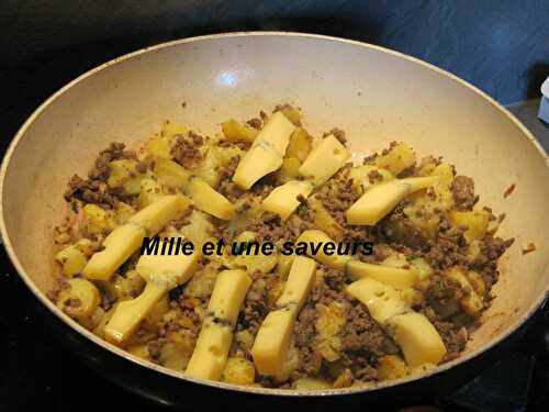 Avec ce temps pas terrible et pluvieux, voici la recette d'une poêlée de pommes de terre, courgettes à la viande hachée, un bon plat complet facile et rapide à réaliser.