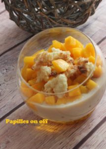 Voici une recette qu’une de mes amies m’a fait découvrir et j’ai totalement adoré avec la mangue fraîche servi sur le dessus.