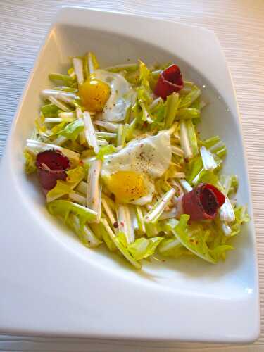 Aujourd'hui c'est la recette de la salade au magret séché et aux œufs de cailles.