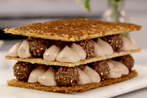 Avec une ganache montée chocolat praliné, une pâte feuilletée caramélisée, vous allez succomber au mille-feuille Ferrero Rocher.