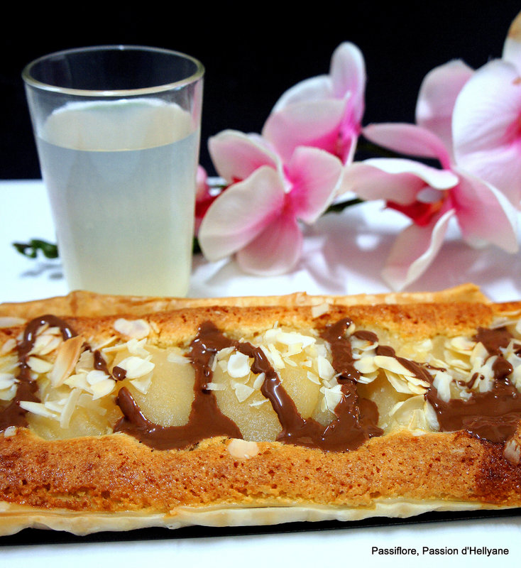 Galette des rois,poire,chocolat,crème d'amande,pâte feuilletée,épiphanie,fève,cacao,poire au sirop