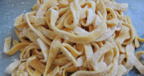 Tagliatelles fait maison De bonnes tagliatelles fraîches qui sont meilleures que celles du supermarché ! On peut même en préparer plus et les congeler, sinon, c'est sûr, il n'en restera pas.