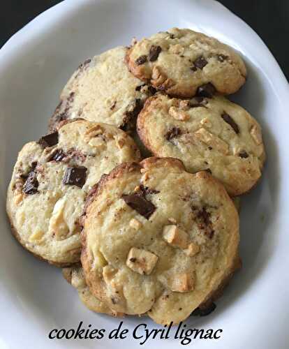 Cookies aux 2 chocolats, recette de Cyril Lignac -ATELIER DE BRIGITTE- Toujours confinés? bin mouai, c'est pas drôle.