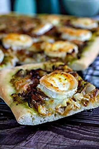 Aujourd’hui je viens partager une recette parfaite pour un repas du soir: une pizza moelleuse au pesto oignons et chèvre.