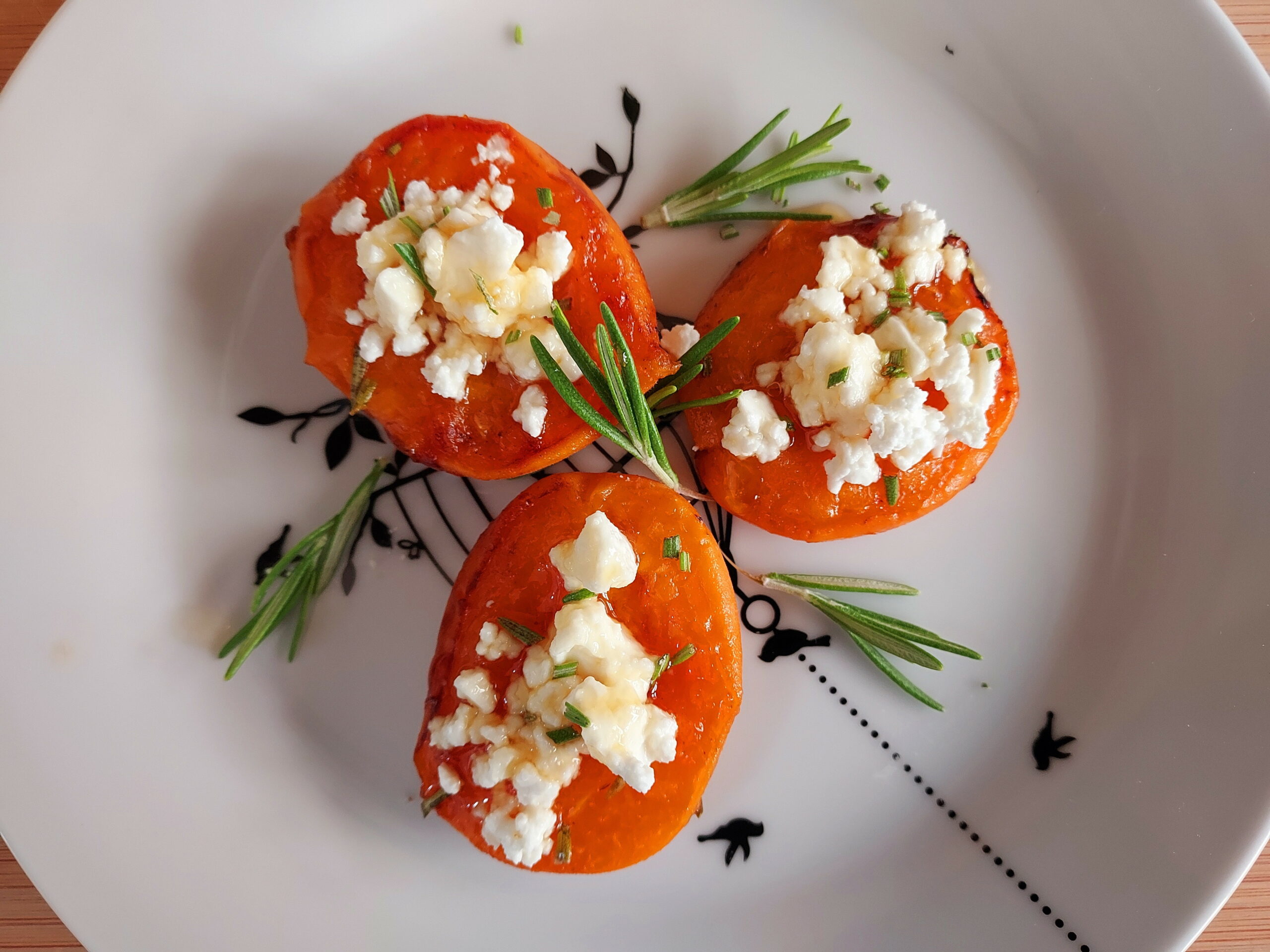 ABRICOTS ROTIS AU BRIE , POIVRE DE SELIM ET ROMARIN Rien de plus facile à réaliser .