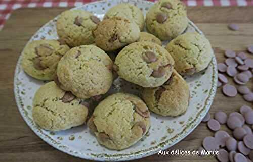Cookies à la poudre d'amandes et chocolat ruby Je ne connaissais le chocolat ruby que de nom ou par des recettes publiées sur le net.