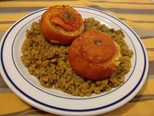 Ingredients pour 4 personnes : 4 grosses tomates 100 g de bœuf haché 1 oignon 2 gousses d'ail 2 c.