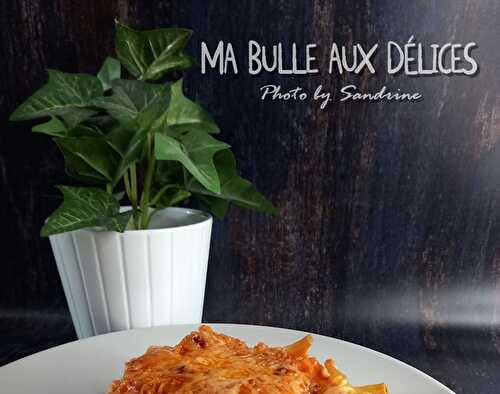 Gratin de pâtes au poulet et chorizo, sauce tomate, au M.