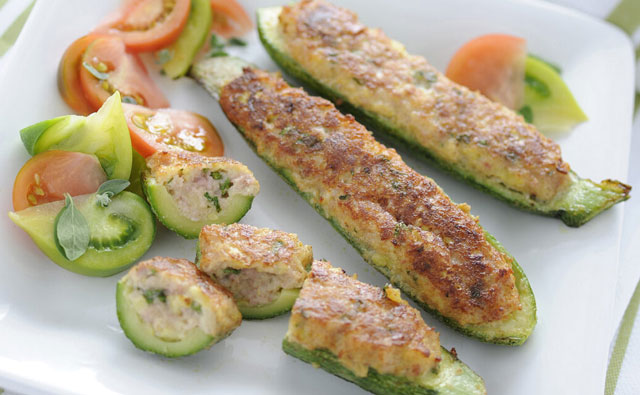 Courgettes farcies au thon et fromage frais WW, recette d'un bon plat léger à base de courgettes et de thon, facile à réaliser, à servir avec une salade.