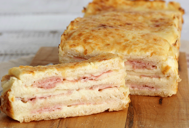 Une version bien pratique du croque-monsieur décliné en Croque cake ! Un peu comme une terrine que l’on emporte en pique-nique, facile pour un