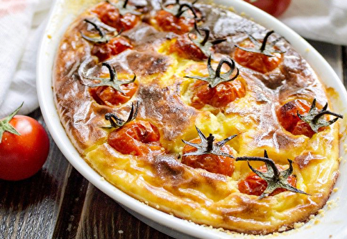 Clafoutis au chèvre frais et tomates cerises léger, recette d'un clafoutis salé et léger, facile et simple à réaliser pour un repas équilibré.