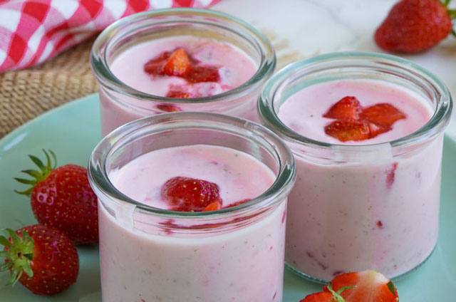 Yaourt aux fraises, un savoureux un yaourt aux fraises léger, rafraîchissant parfait pour une collation saine ou un dessert sans culpabilité.