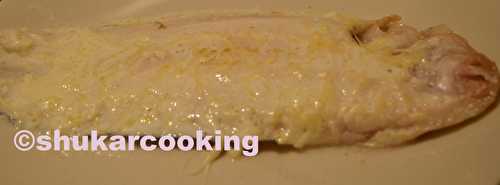 Pour 5 : 5 filets de soles 50 g de beurre salé 100 g de fromage râpé 20 cl de crème fraiche liquide à 5% 5cl de calvados Chauffer le four à 240°.