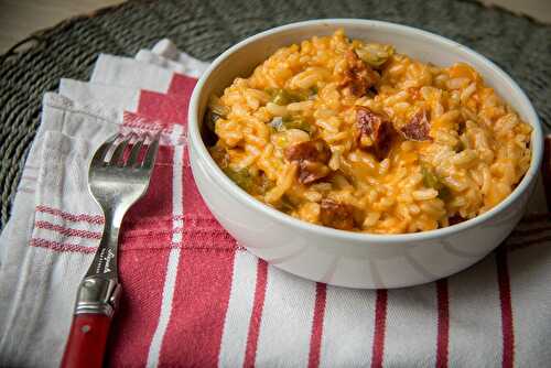 Et voici un nouveau risotto, je vous ai dit que nous sommes fans à la maison, en plus mon fils ainé adore le chorizo, alors je profite qu’il soit là pour lui faire plaisir.