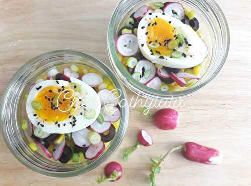 Présentée en bocal, la salade est des plus appétissante n’est-ce pas ??!!