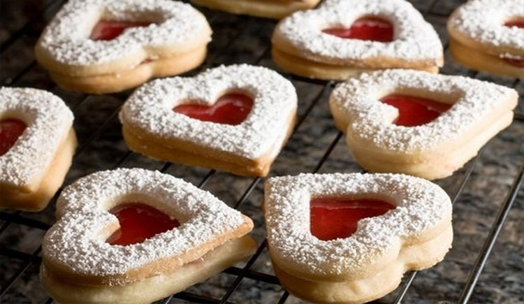 Les biscuits bien refroidis, saupoudrer les biscuits avec le trou de sucre glace, mettre un peu de confiture au centre et coller deux biscuit ensemble.