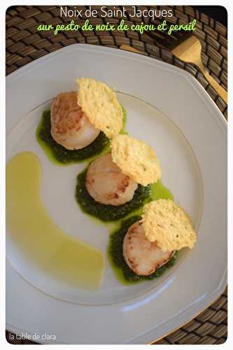 Noix de saint jacques sur pesto de noix de cajou et persil