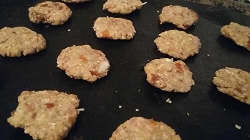 Ingrédients (8 personnes): 100 gr de farine 50 gr de flocons d'avoine 3 cas d'huile d'olive 2 cas de crème liquide 1/3 de bûche de chèvre émiettée 6 tomates séchées coupé finement 2 tranches de jambon cru coupé finement 1 càc de thym poivre, sel (peu).