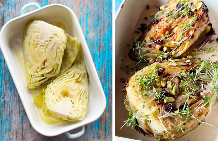 Ma salade de chou pointu a un goût incroyable grâce à la sauce au sumac et à la mélasse de grenade.