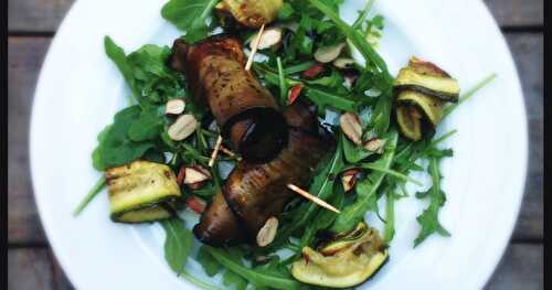 Les aubergines roulées ou involtini d'aubergines à la Mozarella ! pour 20 petits roulés 4 aubergines 2 ou 3 mozzarella di buffala 1/2 pot de tomates séchées huile d'olive basilic frais Préparer les aubergines , c'est le plus long mais ça peut se faire.