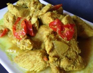 Le nasi kuning, est un plat indonésien de riz cuit avec du lait de coco et du curcuma, qui lui donne sa couleur jaune.