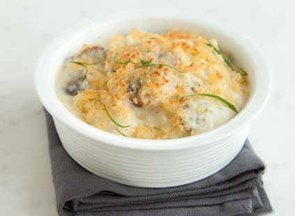 Pour 8 parts: 700 g de poireaux 300 g d'oignons rouges 120 g de farine 40 g de beurre allégé fondu 125 ml de lait.