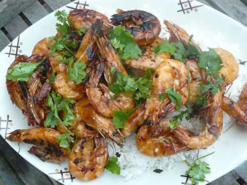 A la plancha, au teppanyaki, au barbecue : Difficultés : * coût : ** Préparation : 30 minutes, temps de marinade : 2 heures J’ai choisi pour cette recette de grosses crevettes rouges (ou roses) .