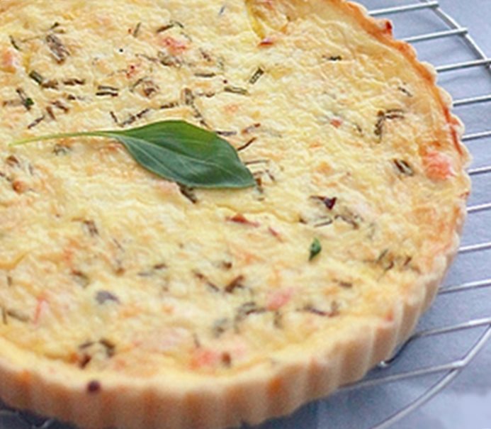 Aujourd’hui je vous propose une délicieuse quiche au crabe, à servir soit en entrée, soit en plat complet avec une salade.