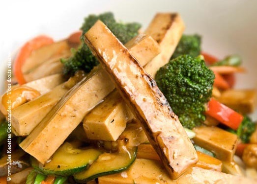 Pour deux personnes: 1 bloc de tofu de 200g farine 3 c à s sauce soja 3 c à s sirop d'agave 3 c à s d'huile d'olive paprika Egouttez le tofu entre deux feuilles de papier absorbant en l'écrasant avec un objet lourd (dictionnaire, fait tout.