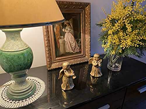 Ma déco sur la desserte qui fait l’angle du coin repas avec l’azalée offert par M.