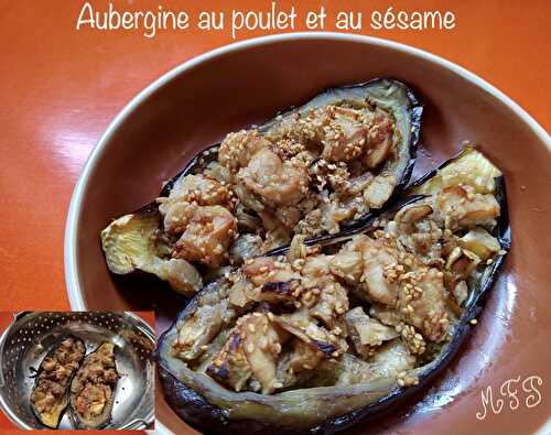 Avec Aubergine, blanc de poulet, sauce soja, graines de sésame, huile de sésame, coriandre une recette simplissime et light 👍