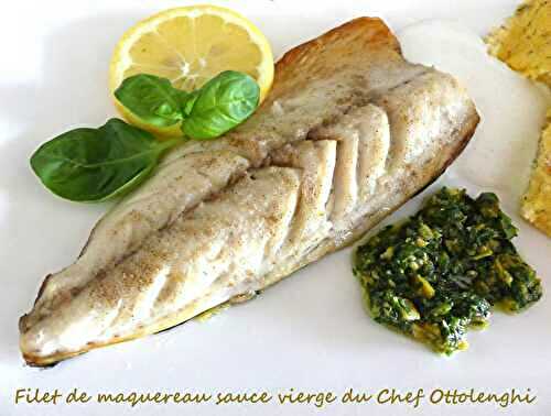 Des Filets de maquereaux aux tomates confites et aux câpres servis avec des pâtes linguine assaisonnées d'huile d'olive et de parmesan.