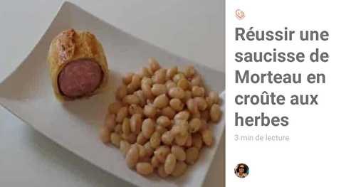 Morteau en crépinette, morilles en sauce au Brillat Savarin et graines de Carvi, purée de patate douce et poires pochées au vin aux Griottines .