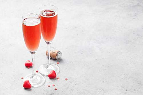 Cocktail fruité et élégant à base de champagne, de crème de cerise et de nectar de pêche.