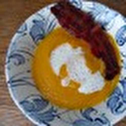 Recette d'un risotto à la courge réduite en coulis, au lard fumé, et noix torréfiées.